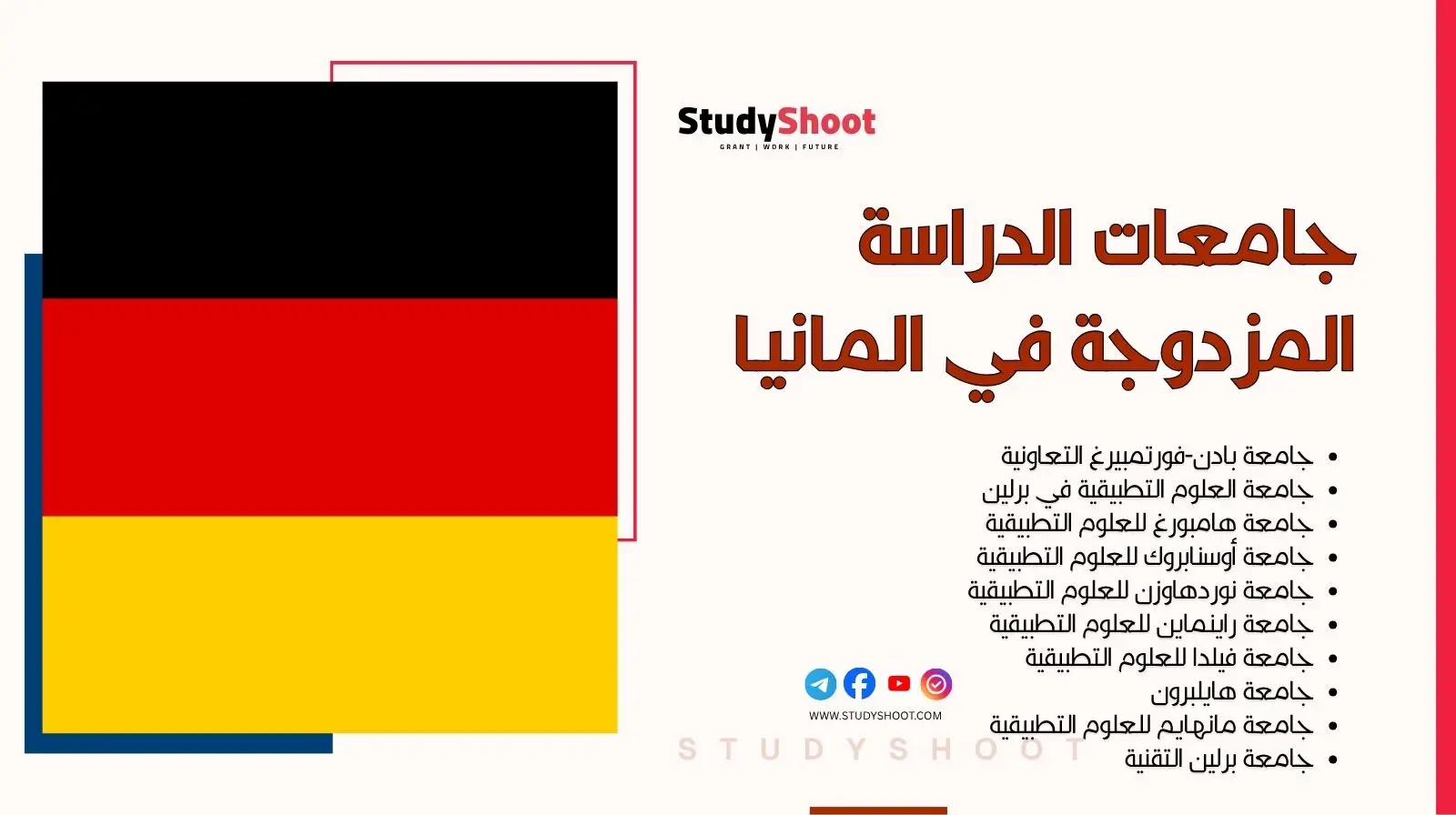 تتميز ألمانيا بمجموعة متنوعة من الجامعات التي تقدم برامج الدراسة المزدوجة. هذه الجامعات تتعاون مع شركات رائدة في مختلف القطاعات لتوفير تجربة تعليمية متكاملة للطلاب. فيما يلي قائمة بأبرز الجامعات التي تقدم برامج الدراسة المزدوجة في ألمانيا: