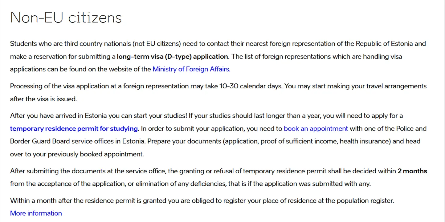 بمجرد الحصول على خطاب القبول الرسمي من الجامعة، تصبح الخطوة التالية هي كيفية التقديم لجامعات إستونيا هي الحصول على تصريح الإقامة المؤقت للدراسة (Temporary Residence Permit for Study). هذه العملية تُدار من قبل مجلس الشرطة وحرس الحدود الإستوني (PPA).
