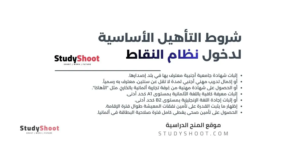 - اللغة الألمانية: الحد الأدنى المطلوب هو المستوى A1 كشرط للدخول في نظام النقاط.