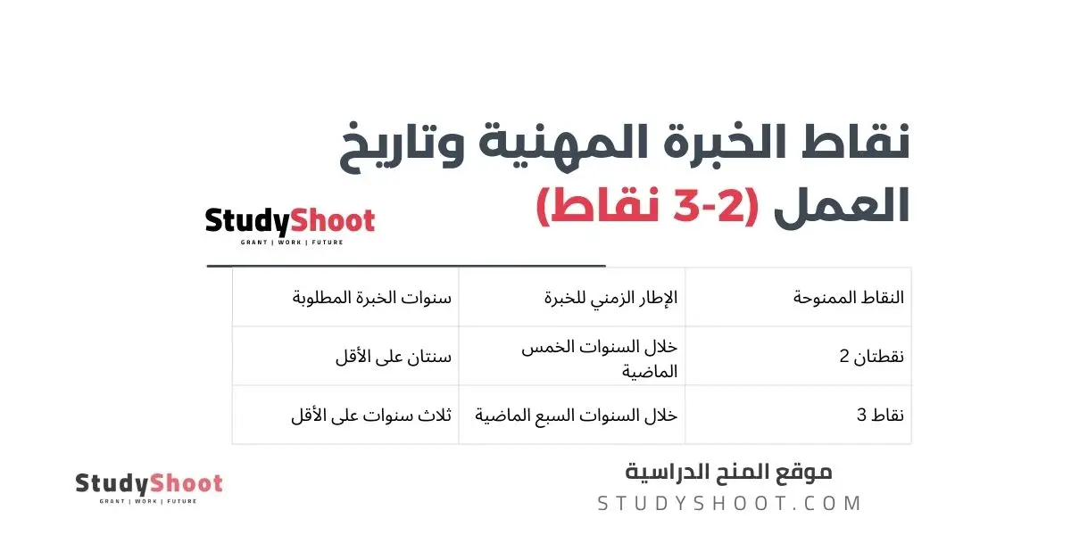 | سنوات الخبرة المطلوبة | الإطار الزمني للخبرة | النقاط الممنوحة |