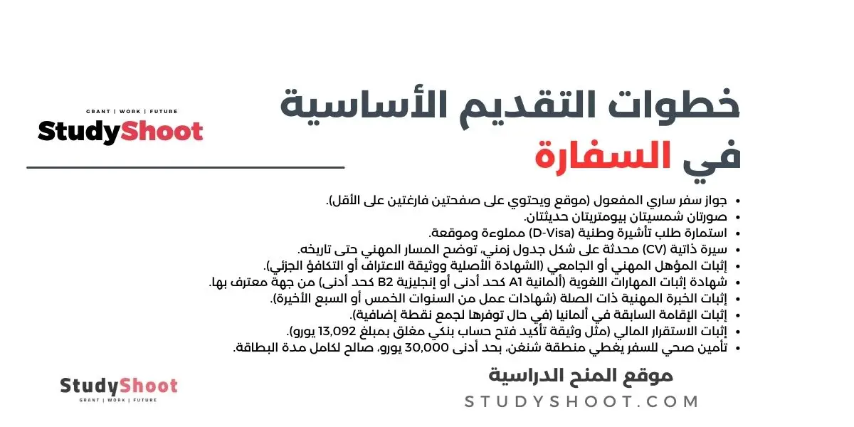 - حجز موعد: تحديد موعد في السفارة أو القنصلية الألمانية المختصة.
