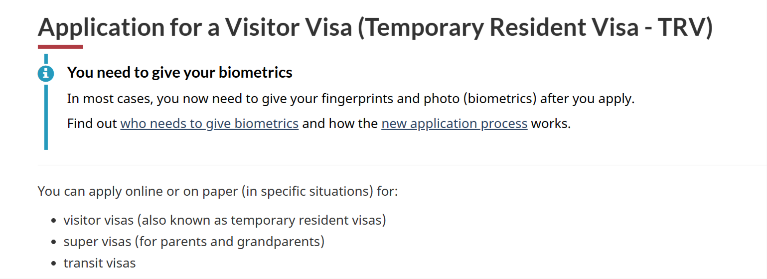 ويمكن القول بأن الـ TRV عبارة عن ختم أو ملصق يوضع في جواز سفرك أو وثيقة منفصلة صادرة عن مكتب التأشيرات. يشترط دخول بعض الجنسيات إلى كندا, وهو صالح لفترة زمنية محددة.