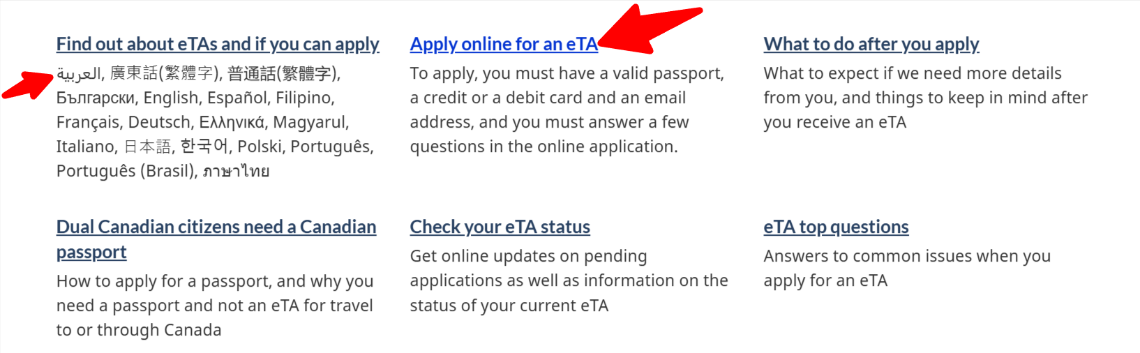 - الحصول على تأشيرة إقامة مؤقتة (TRV) أو تصريح سفر إلكتروني (eTA): اعتمادًا على بلدك الأصلي, قد تحتاج إلى الحصول على TRV أو eTA لدخول كندا.