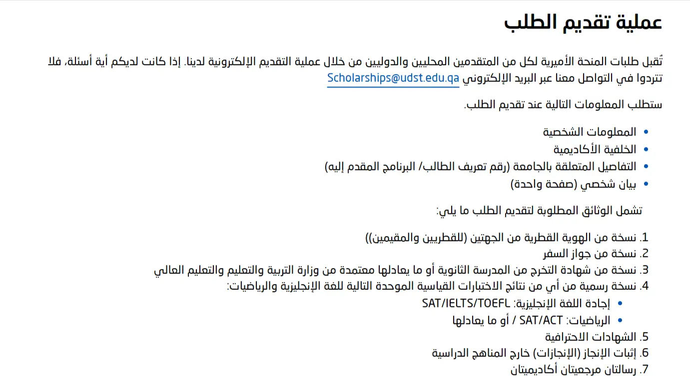 الأوراق المطلوبة للتسجيل في المنحة الأميرية في جامعة الدوحة