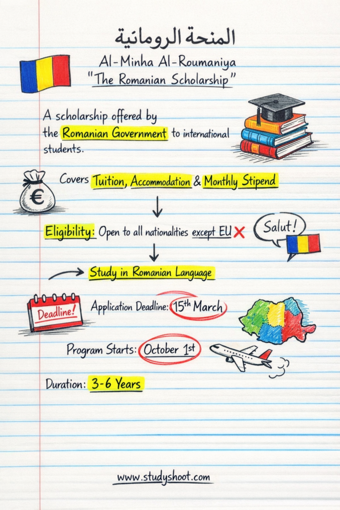تعتبر منحة الحكومة الرومانية إحدى أبرز الفرص التعليمية المتاحة للطلاب الدوليين من خارج الاتحاد الأوروبي، الراغبين في متابعة تعليمهم العالي في بيئة أكاديمية أوروبية متميزة. هذه المنحة، التي تشرف عليها وزارة الخارجية الرومانية، تهدف إلى تعزيز التبادل الثقافي والعلمي بين رومانيا ودول العالم، وتقدم تمويلاً شاملاً لمراحل البكالوريوس، الماجستير، والدكتوراه.