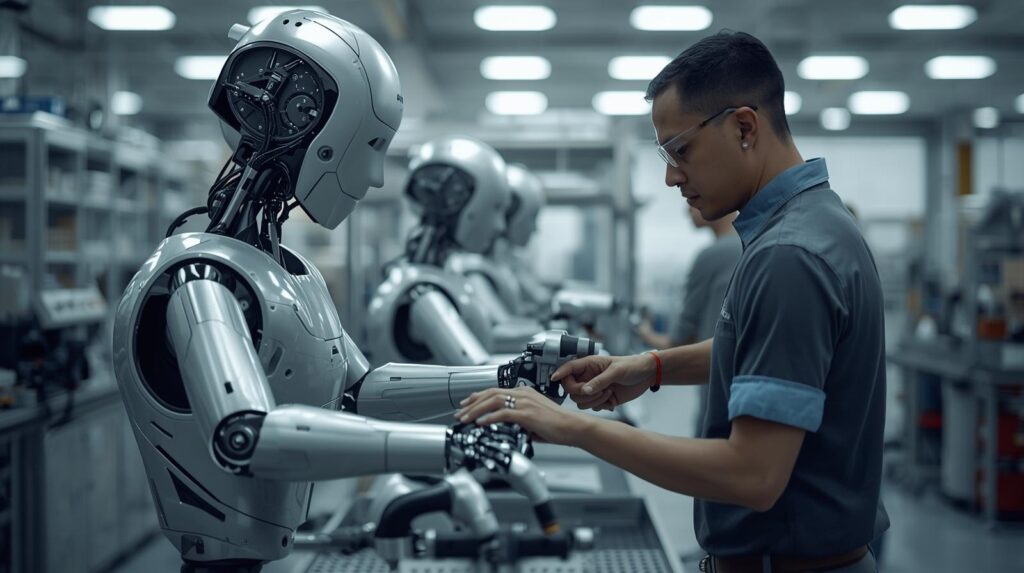تنتشر الكوبوتات في مصانع السيارات والإلكترونيات، حيث يمكنها تنفيذ مهام دقيقة مثل اللحام أو اختبار الجودة. بدمج الذكاء الاصطناعي، أصبحت قادرة على التنبؤ بالأعطال وتحسين ذاتها باستمرار.