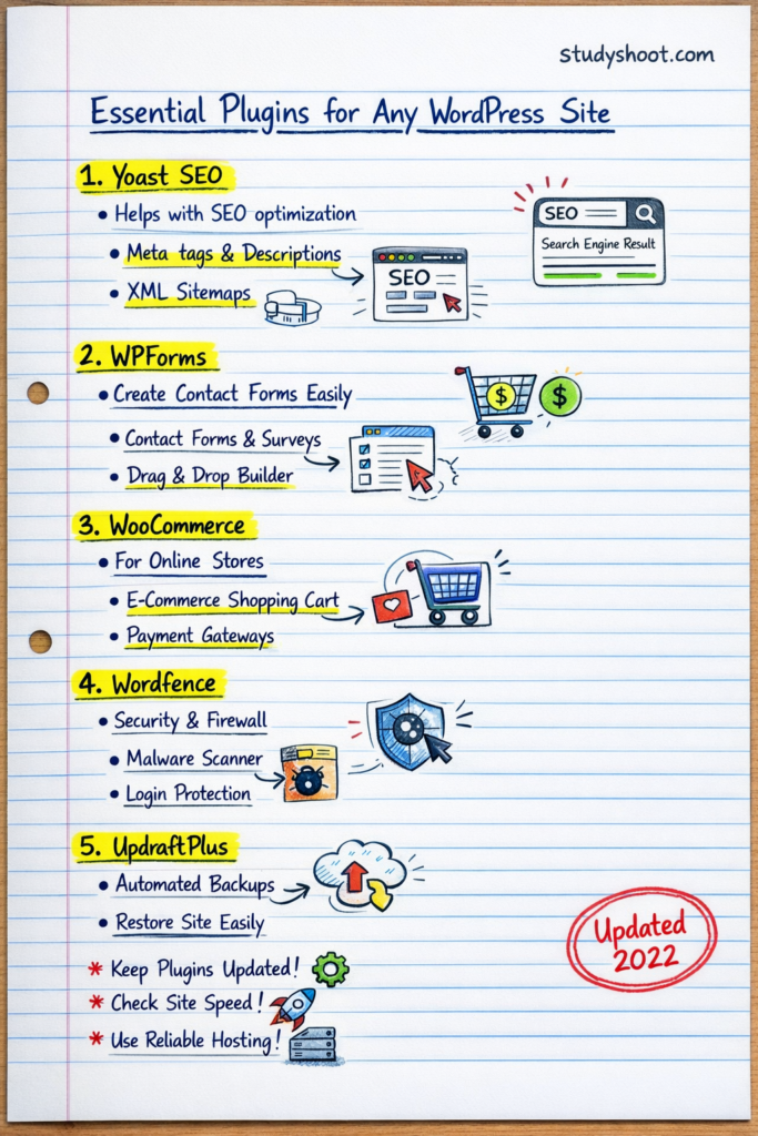 Yoast SEO، WPForms، وUpdraftPlus من افضل الخيارات السهلة للمستخدمين المبتدئين.